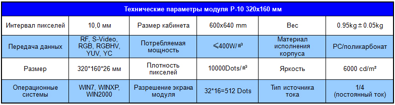 Светодиодный модуль Р10 белый, характеристики: